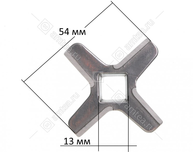 Ширина размаха лопастей 54 мм. Сторона внутреннего отверстия 10 мм. Толщина ножа 10 мм.