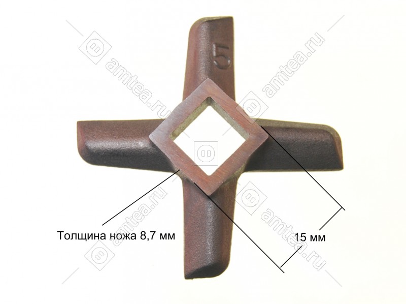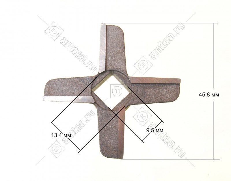 Ширина размаха лопастей 55.5 мм. Сторона внутреннего отверстия 10 мм. Толщина ножа 9.8 мм.